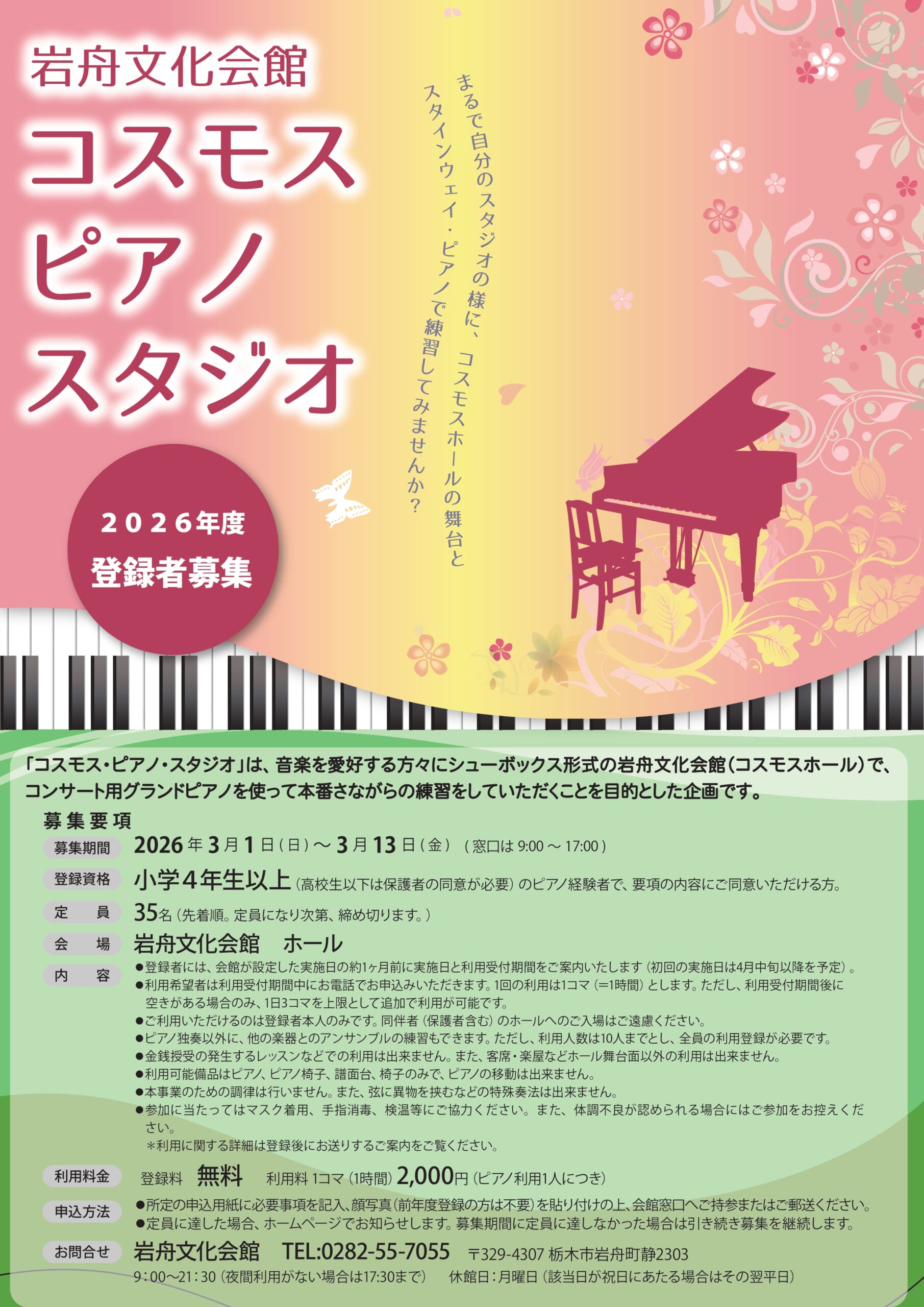 【日時】次月の最初の開館日9:15~ 【場所】岩舟文化会館 事務室